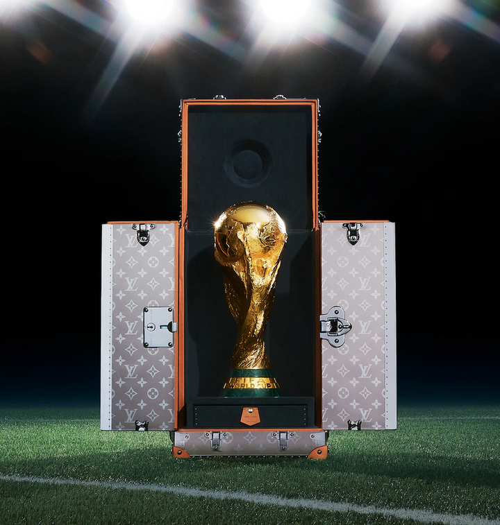 تقدم لويس فويتون، بصفتها الشريك الرسمي لصندوق الكأس لجائزة Ballon d’Or™، إبداعين مصنوعين خصيصًا، مصممين لحمل جوائز لاعبي كرة القدم المرموقة للسيدات والرجال. تم تشطيب كل صندوق من قماش Monogram ويتميز بزخرفة V ذهبية – ترمز إلى “النصر” و”Vuitton” – بينما تتطابق مع روعة Ballon d’Or™ نفسها. كما صممت شركة لويس فويتون صناديق الكأس خصيصًا لكأس العالم FIFA للأعوام 2010 و2014 و2018 و2022. وقد تم تصميم صندوق الكأس بعناية لحماية الكأس التي يبلغ وزنها 6.175 كيلوغراماً من الذهب والملاكيت عيار 18 قيراطاً. وتعتبر هذه العلبة الأنيقة وسيلة لطيفة وذكية لنقل وعرض أعظم جوائز كرة القدم، وهي تواصل ارتباط لويس فويتون بالأساطير على مدى 160 عامًا: من الملوك والكتاب والمستكشفين إلى الكأس الأكثر شهرة في العالم.