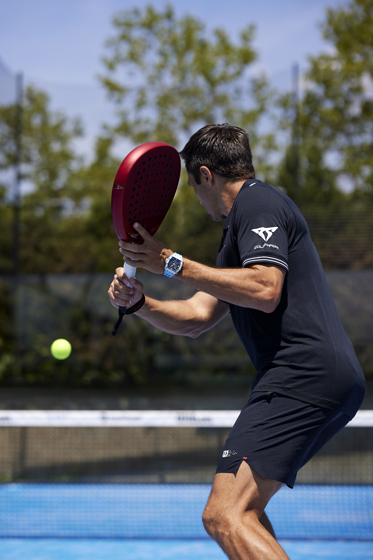 كان أحد أول مخاوفي عند ممارسة البادل، ما إذا كنت سأشعر بالراحة أثناء اللعب وأنا أحمل ساعة، خاصةً وأنني لم أكن قد حملت ساعة أثناء اللعب من قبل. لكن، عندما وضعتها، فوجئت بخفتها الشديدة، فقد شعرت وكأنني لا أضع شيئاً على معصمي، لذا يمكنني اللعب بالكفاءة نفسها وأنا أحمل ساعة ريتشارد ميل، التي توفّر لي راحة كبيرة أثناء ممارسة البادل.