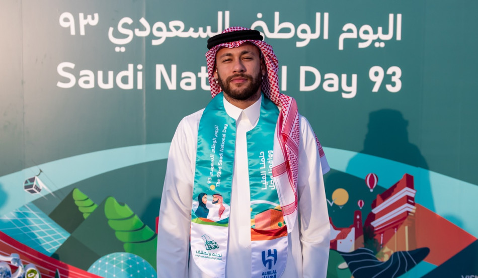 حرص نيمار دا سيلفا، لاعب نادي الهلال، على مشاركة الشعب السعودي احتفالاتهم باليوم الوطني الـ 93، الذي يشهد احتفالات واسعة في عموم المملكة العربية السعودية.